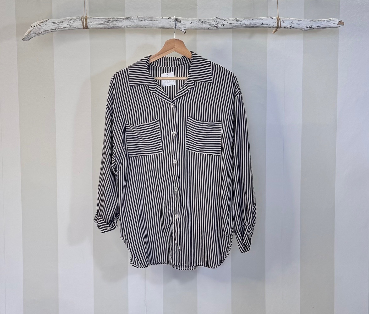Camisa de rayas con bolsillos. Tacto muy suave. Talla única completa.