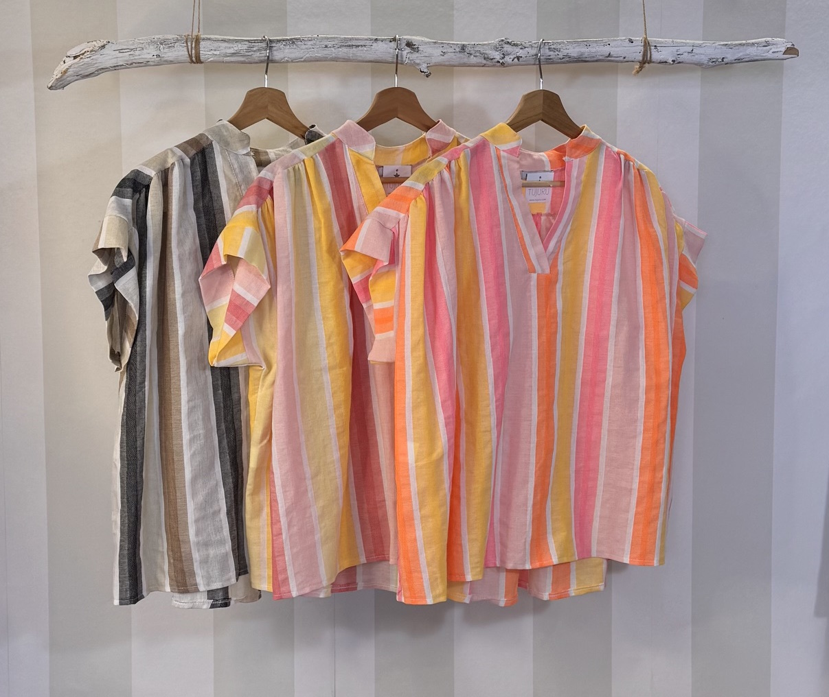 Camisa informal de rayas de colores. Talla única. Modelo ancho y corto.