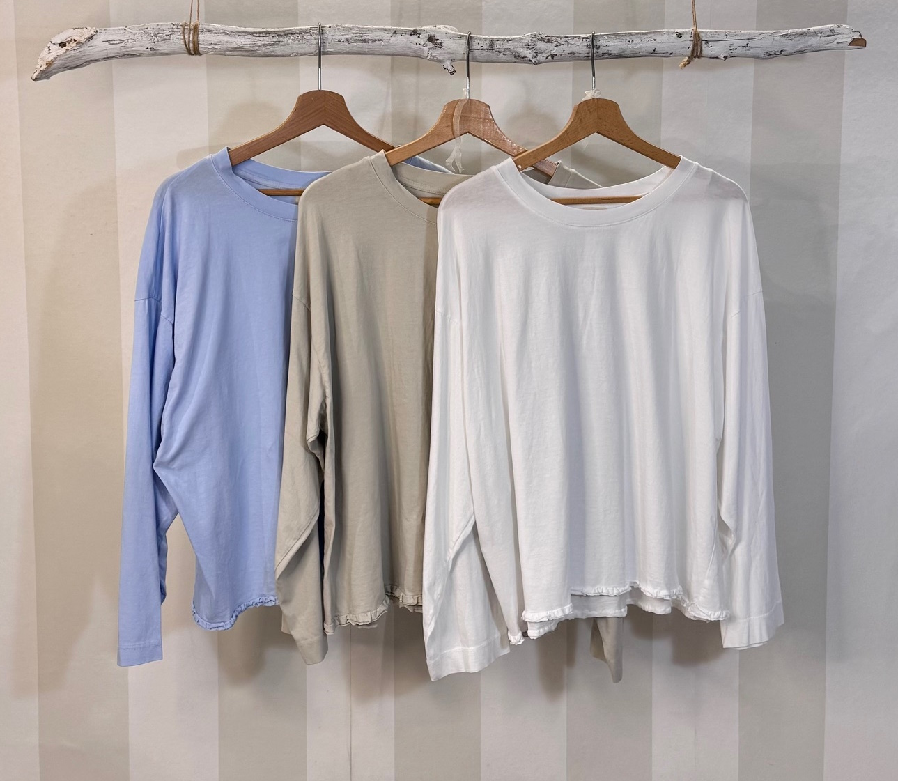 Camiseta básica de algodón con volante rizado en la parte inferior. Talla única completa.