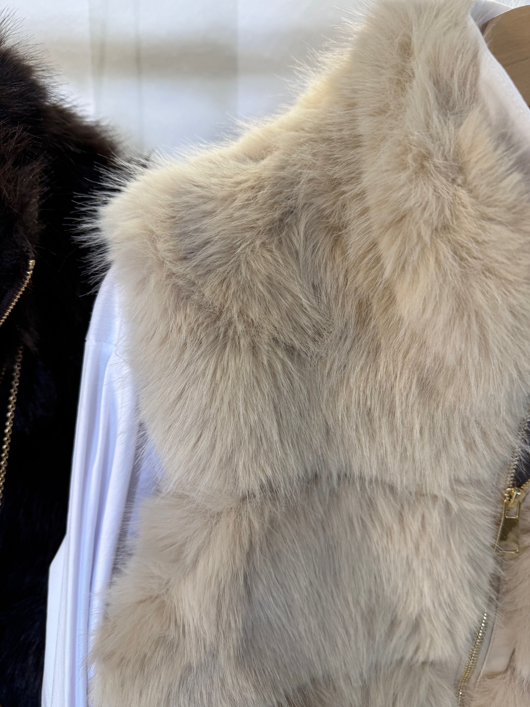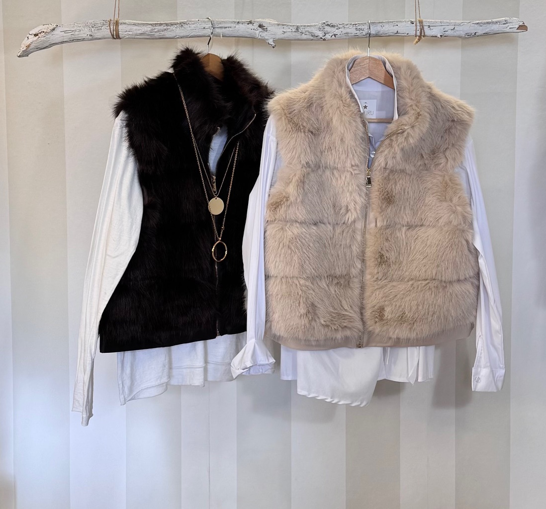 Chaleco de pelo sintético con tacto muy suave. Modelo con bolsillos y parte inferior con polipiel.