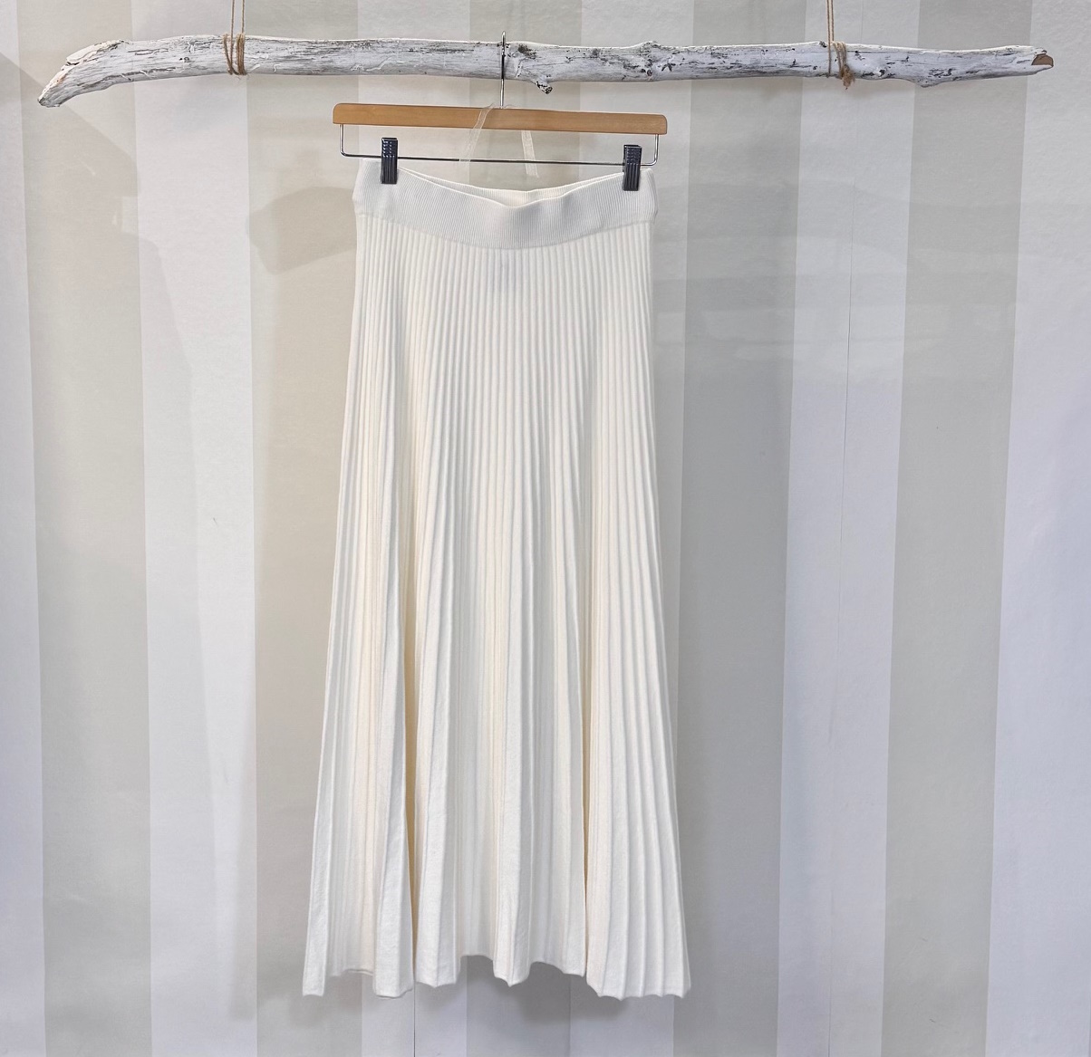 Falda de punto plisada. Ligera forma evasé. Género con mucha caída. Tacto muy suave.