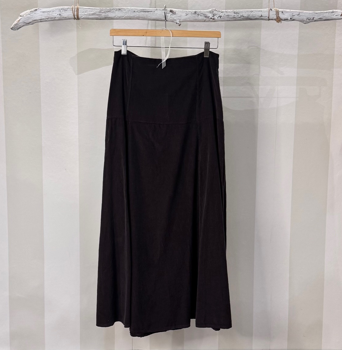 Falda de micro pana. Ligera forma evasé en la parte de abajo.