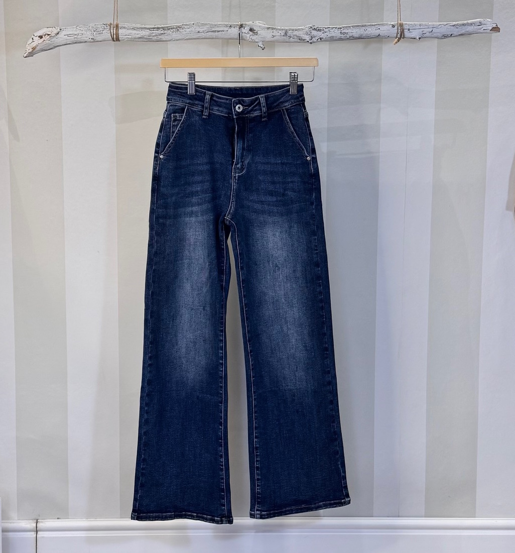 Pantalón tejano recto con bolsillos delanteros oblicuos.