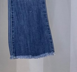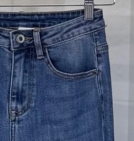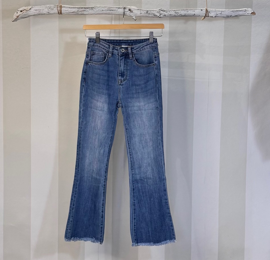 Pantalón cropped. Ajustado de pierna y un poco acampanado en la parte inferior pero no exagerado. Modelo que queda tobillero.
