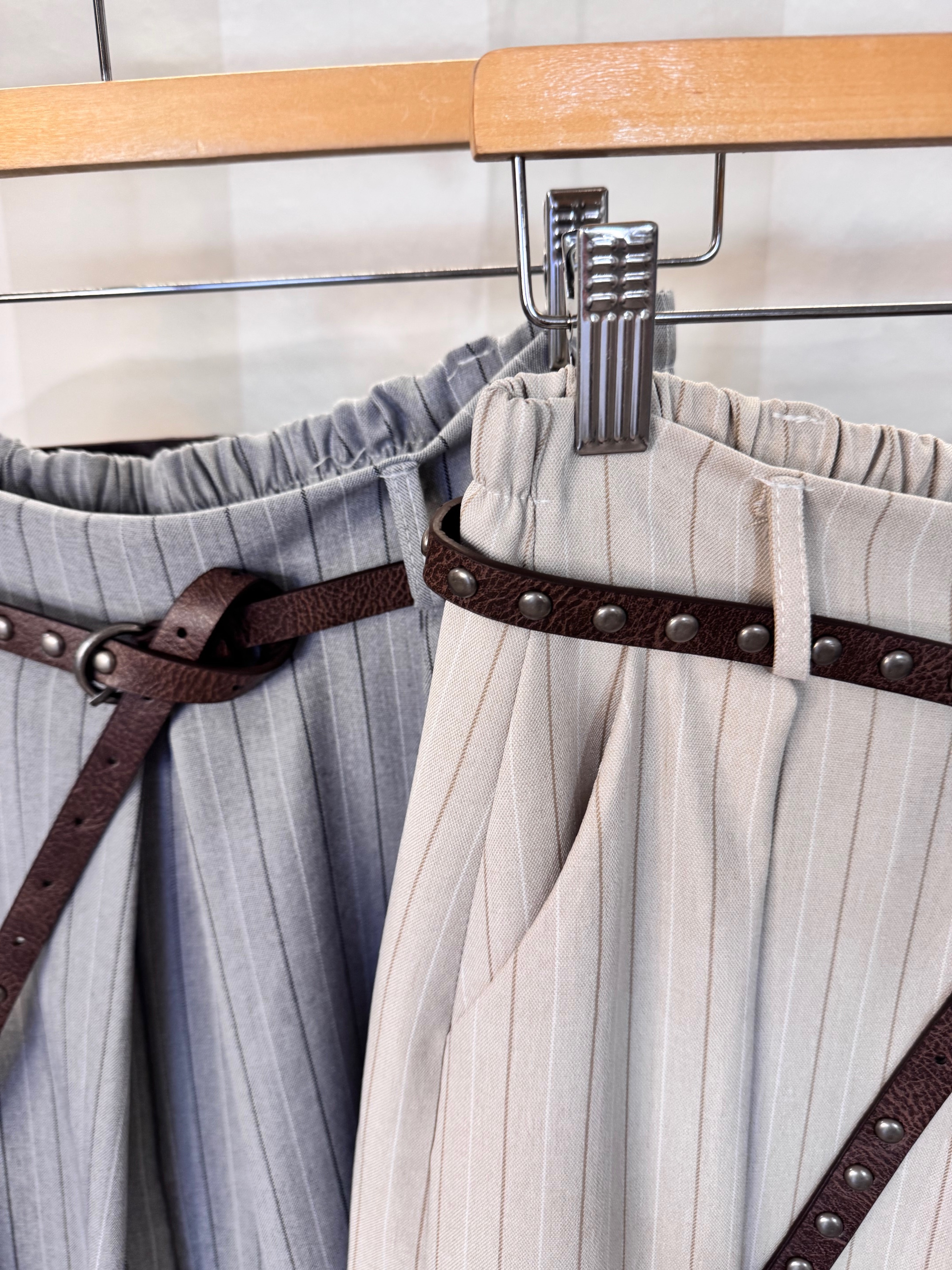 Pantalón ancho efecto falda. Pinzas delanteras. Parte inferior maxi ancha. Cintura elástica en la parte posterior.
