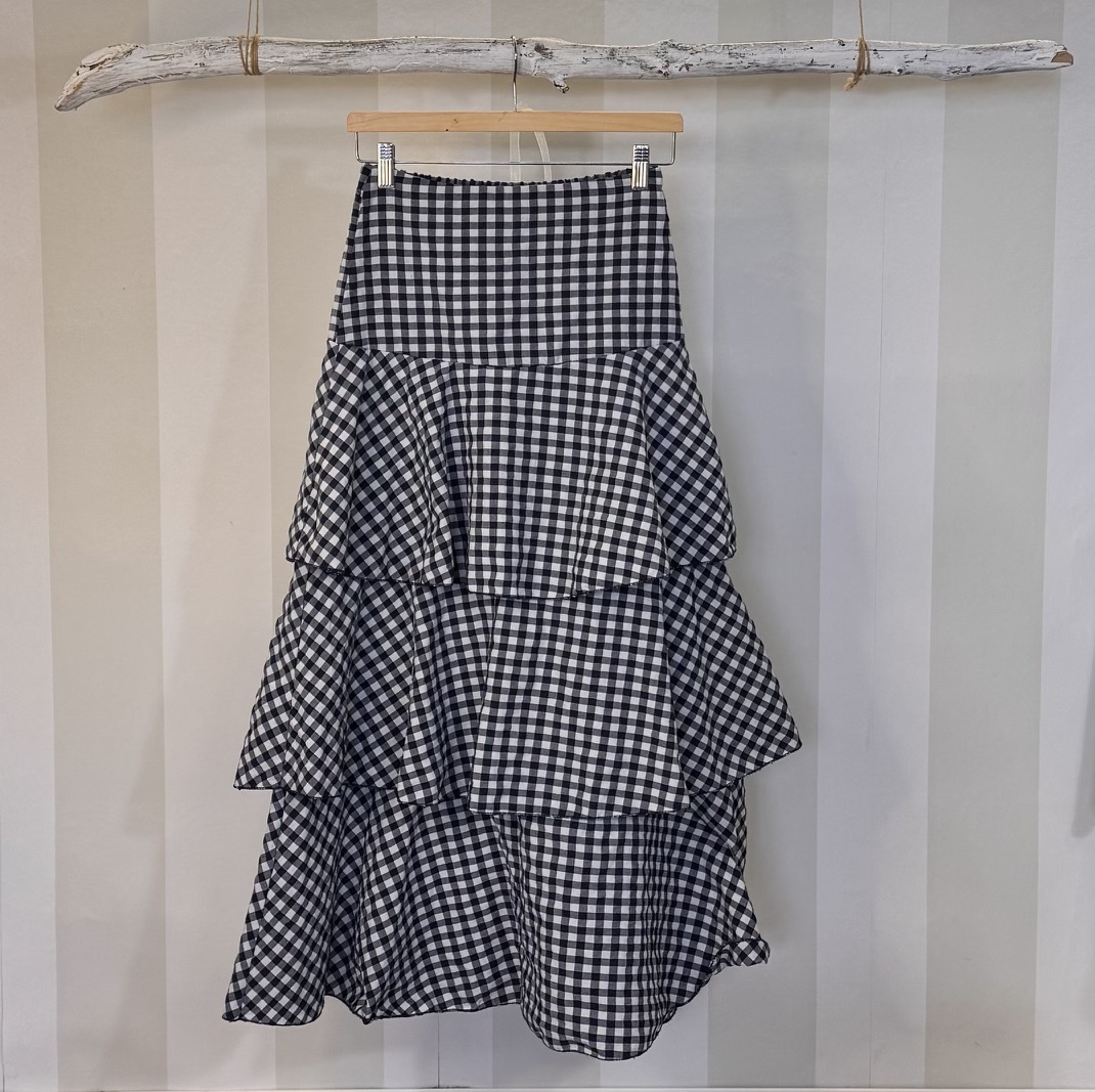 Falda de cuadros con volantes. Talla única con cintura elástica.