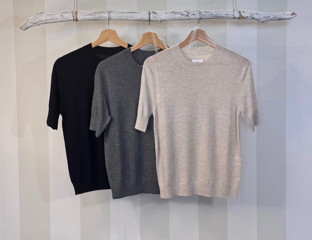Jersey básico de cuello redondo con manga corta. Talla única.