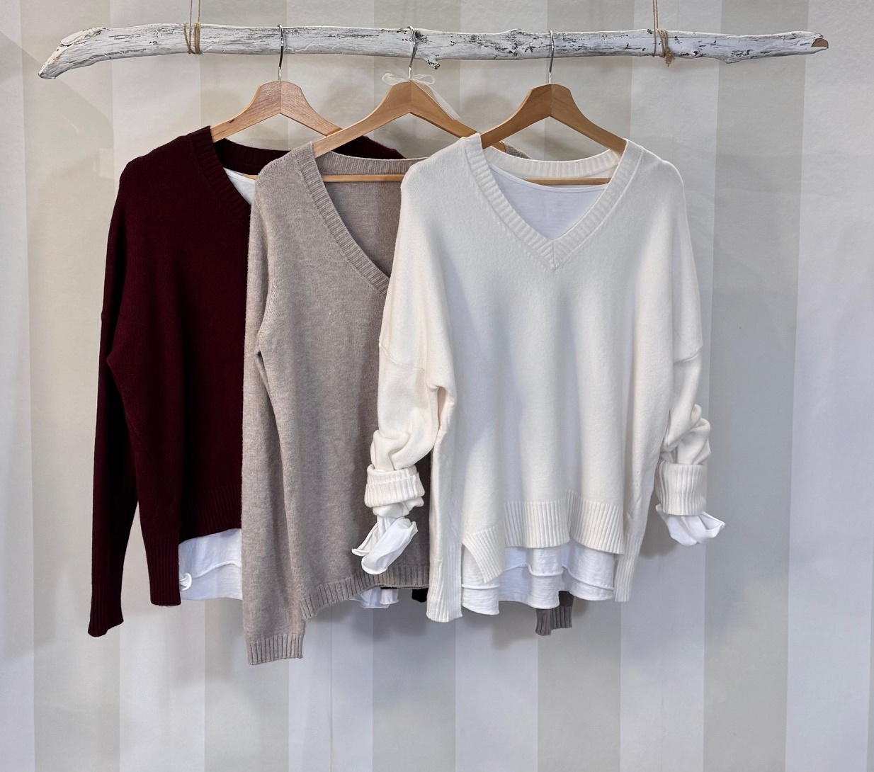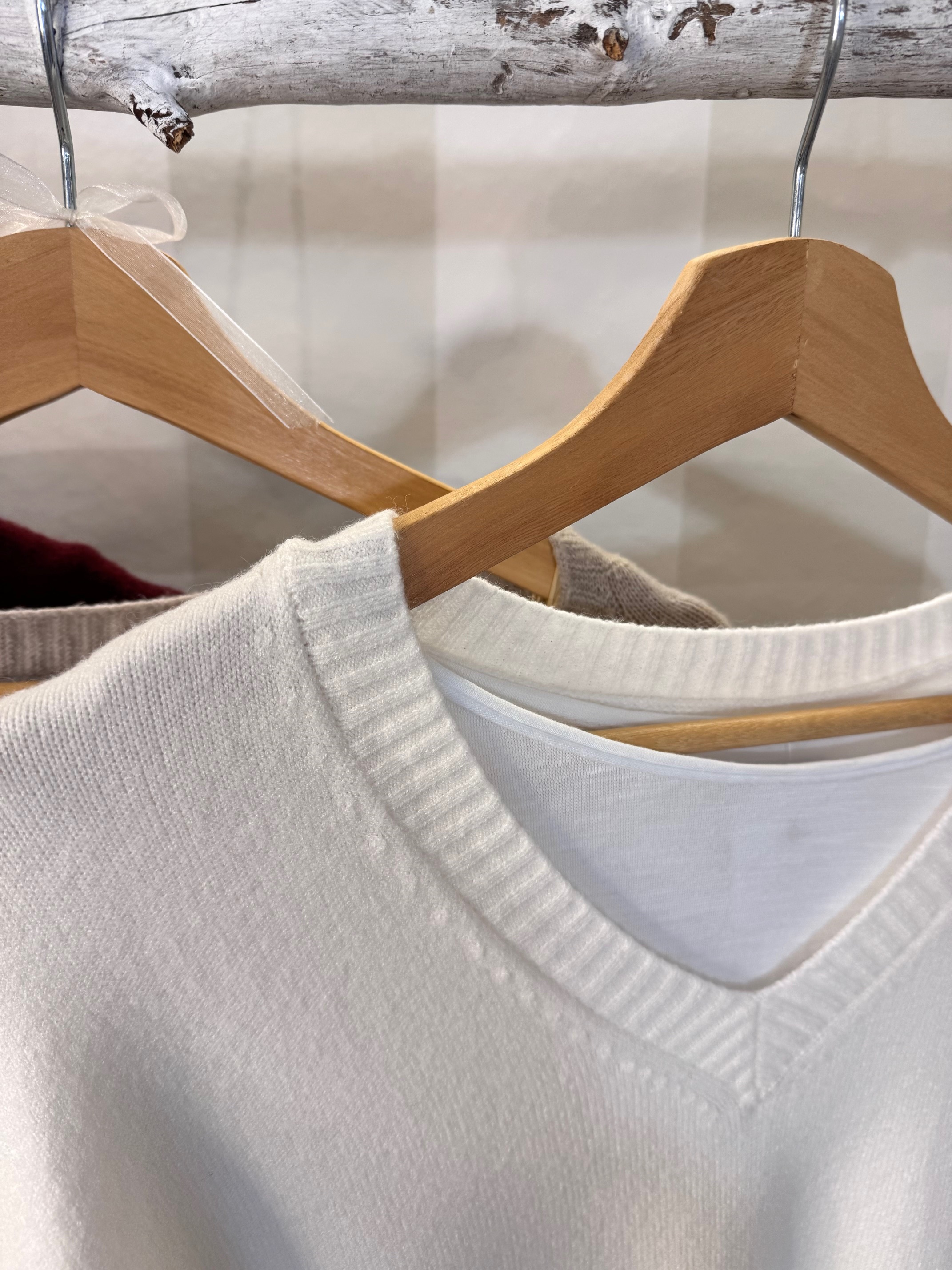 Jersey básico de cuello pico ribeteado. Parte delantera un poco más corta que la trasera.