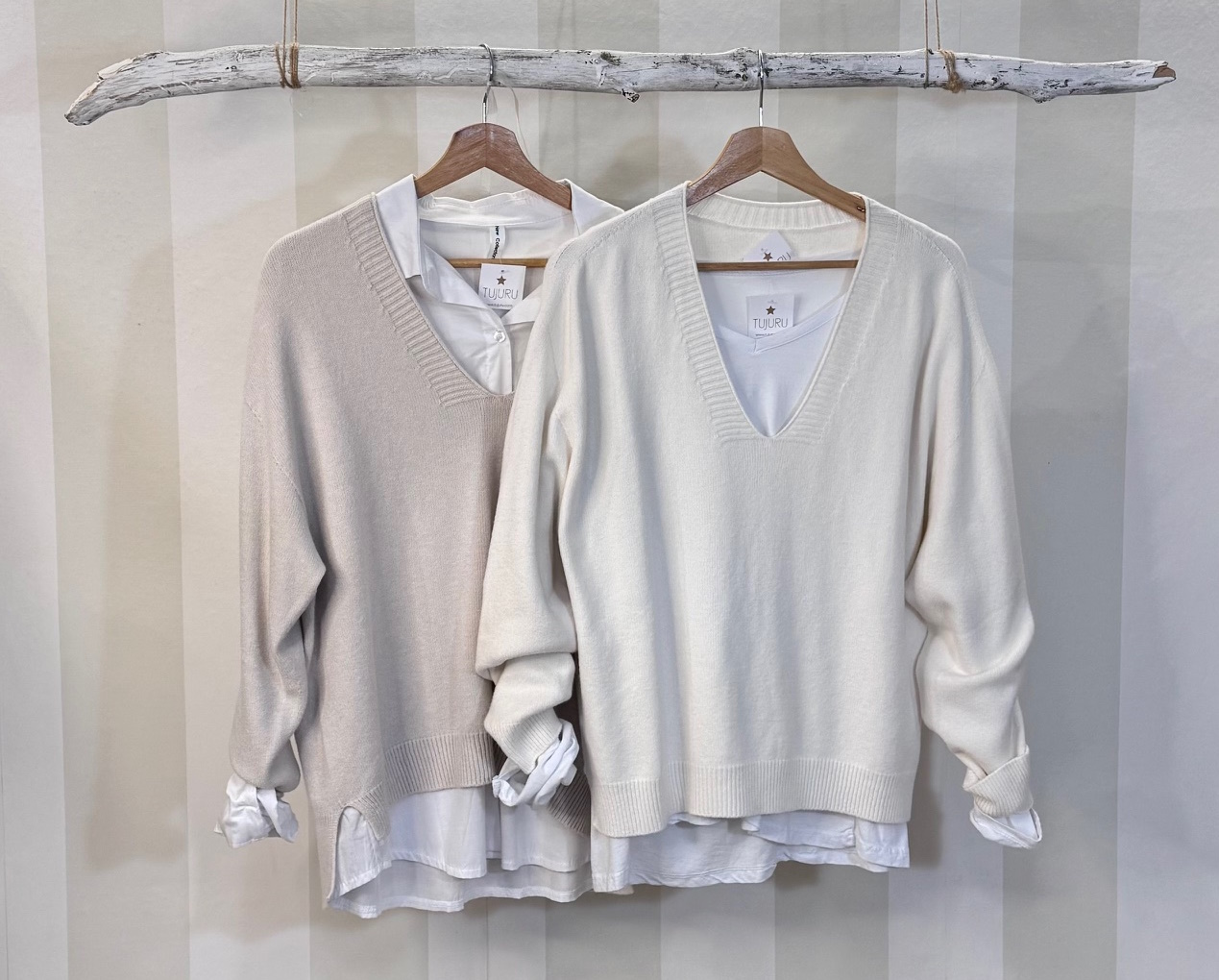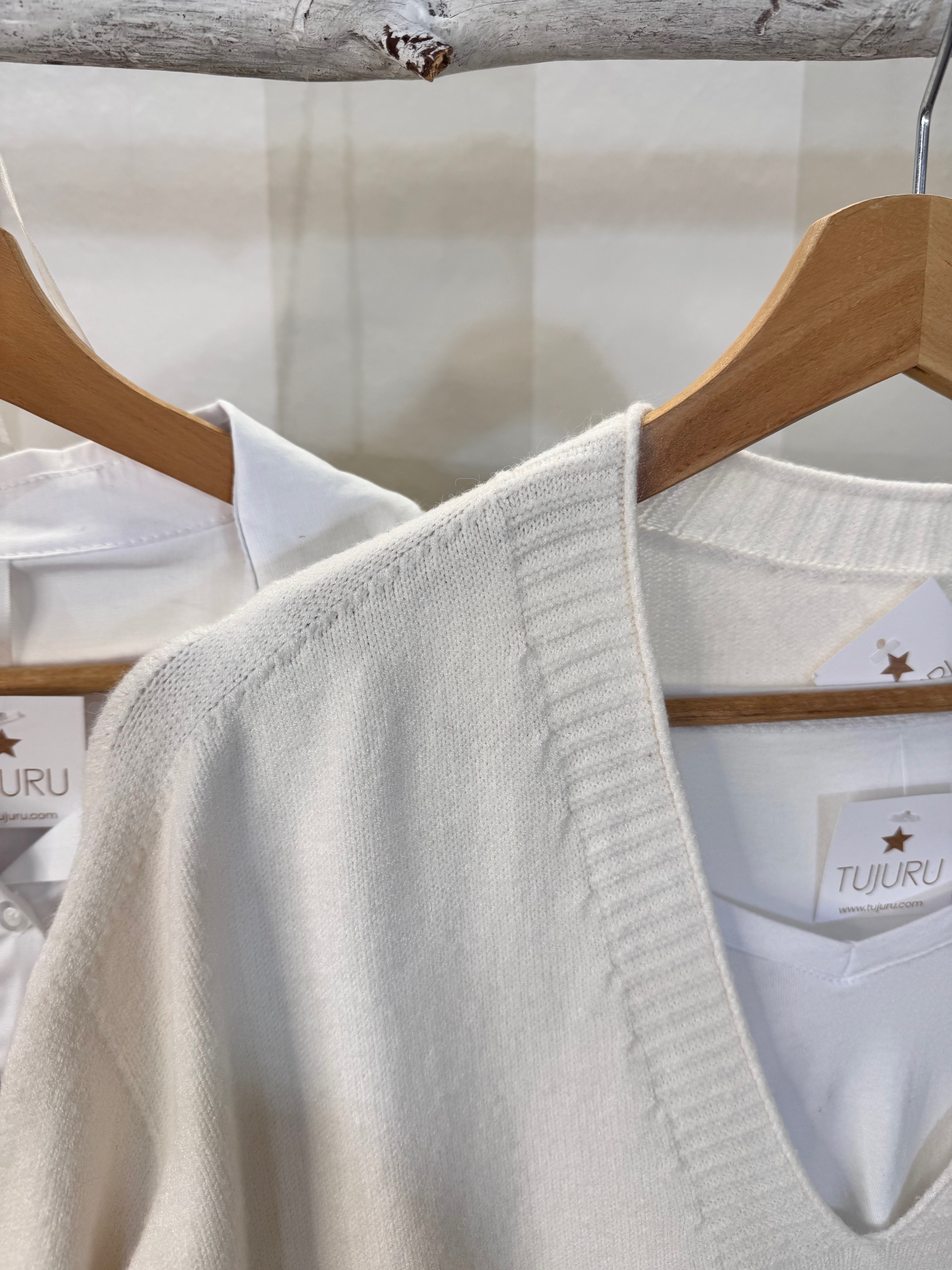 Jersey básico de punto con cuello pico. Tacto muy agradable. Talla única