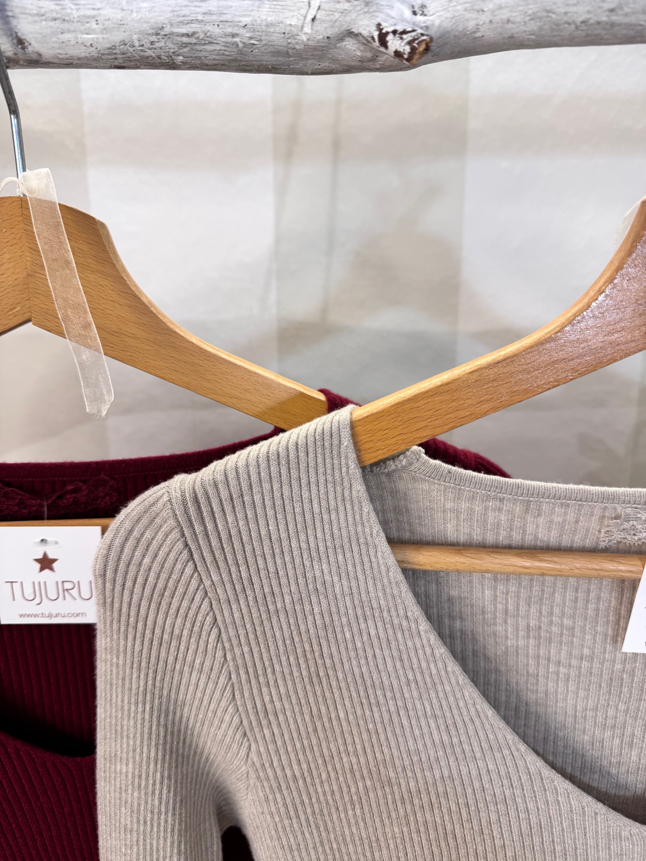 Jersey básico de canalé con escote pico. Tacto muy suave.