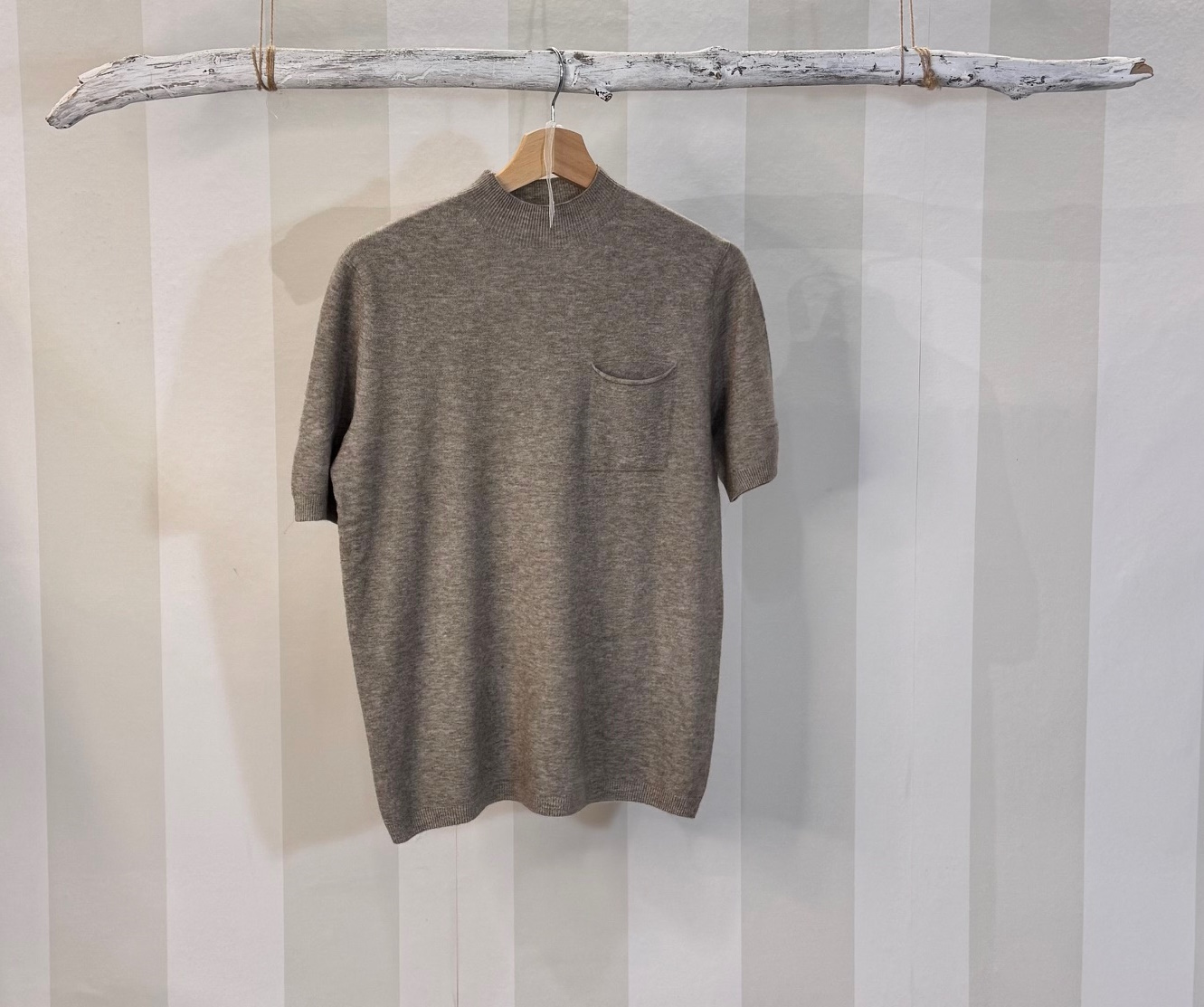 Jersey básico de punto fino con cuello chimenea y bolsillo en la parte delangtera. Talla única.