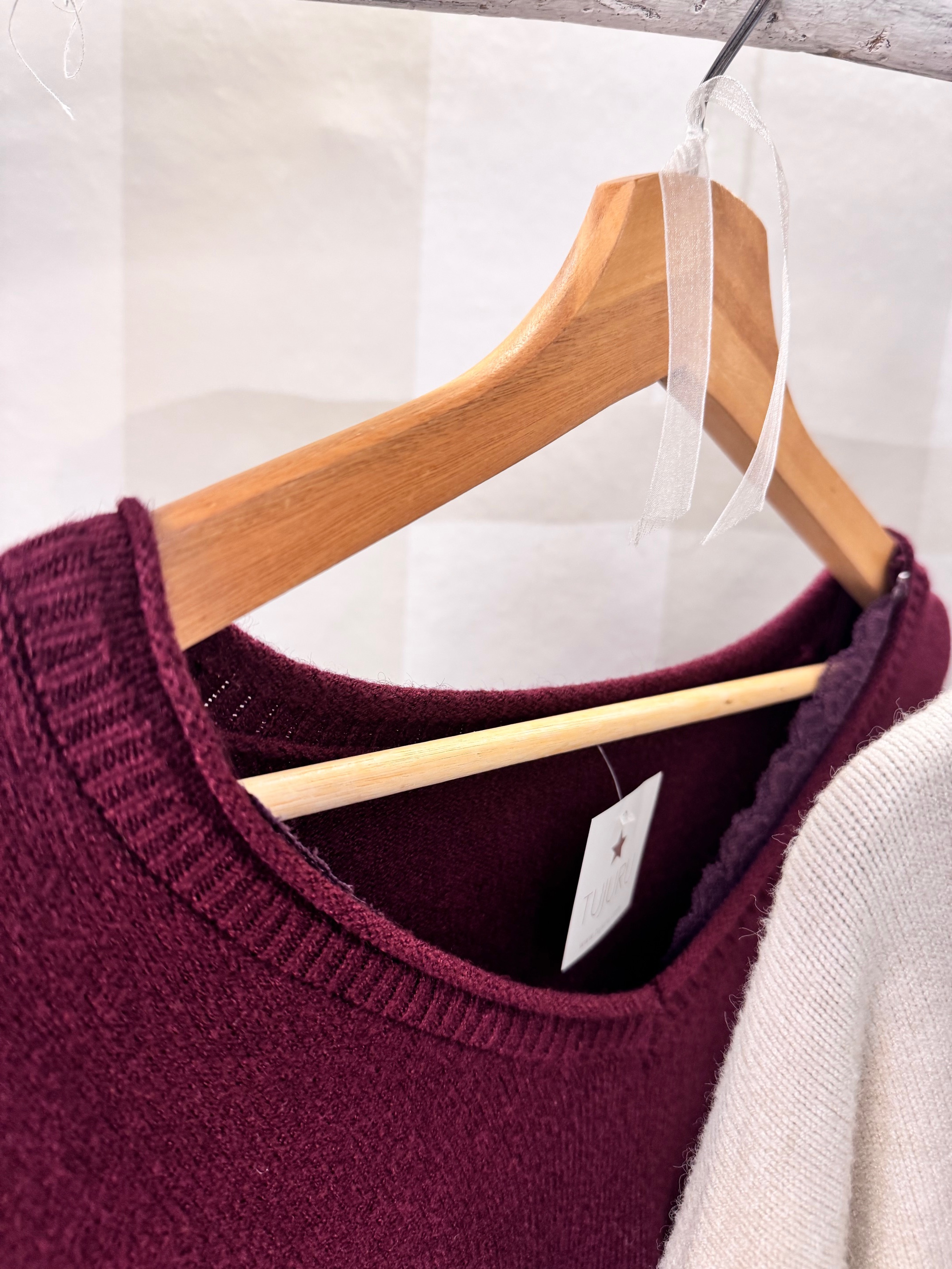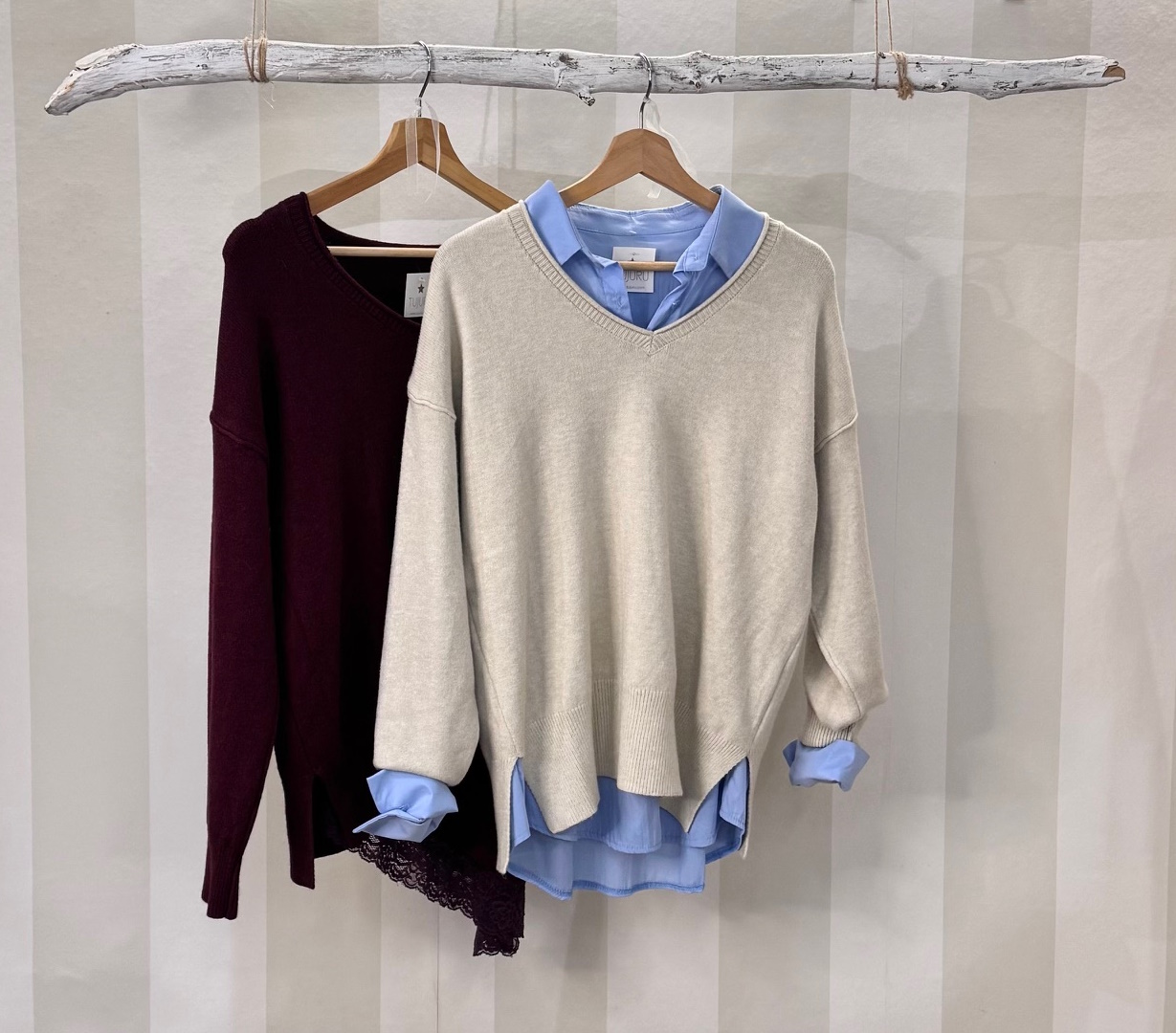Jersey básico de punto medio grueso con cuello pico. Tacto muy suave y esponjoso. Lateral con obertura y parte trasera más larga. Talla única.