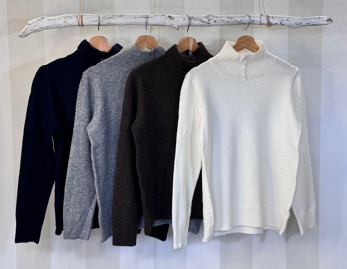Jersey de punto con cuello chimenea y botones. Puedes abrirlo y poner camisa debajo para aportar más luz. Tacto agradable. Talla única.