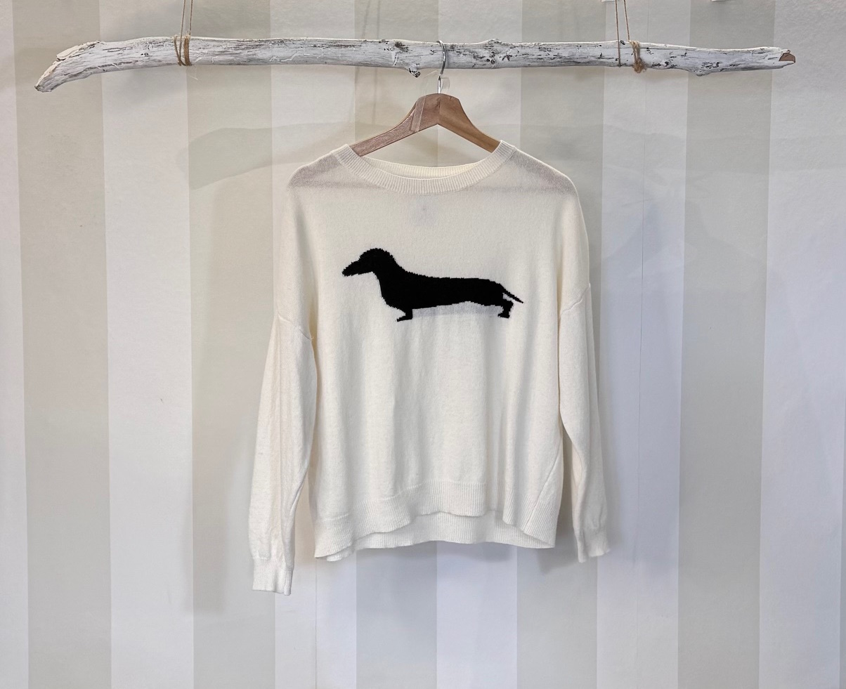 Jersey básico de punto con imagen de teckel en otro color. Talla única.