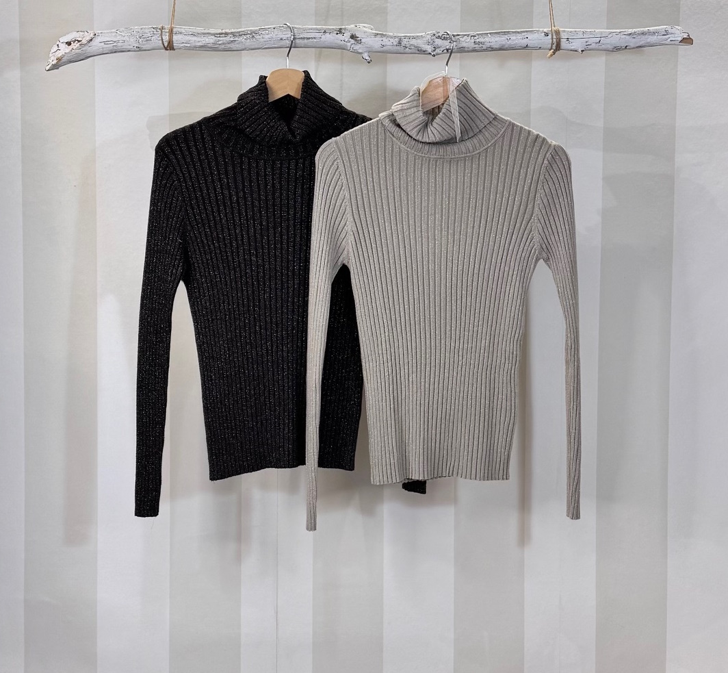 Jersey de canalé con brillo. Talla única, modelo ajustado.