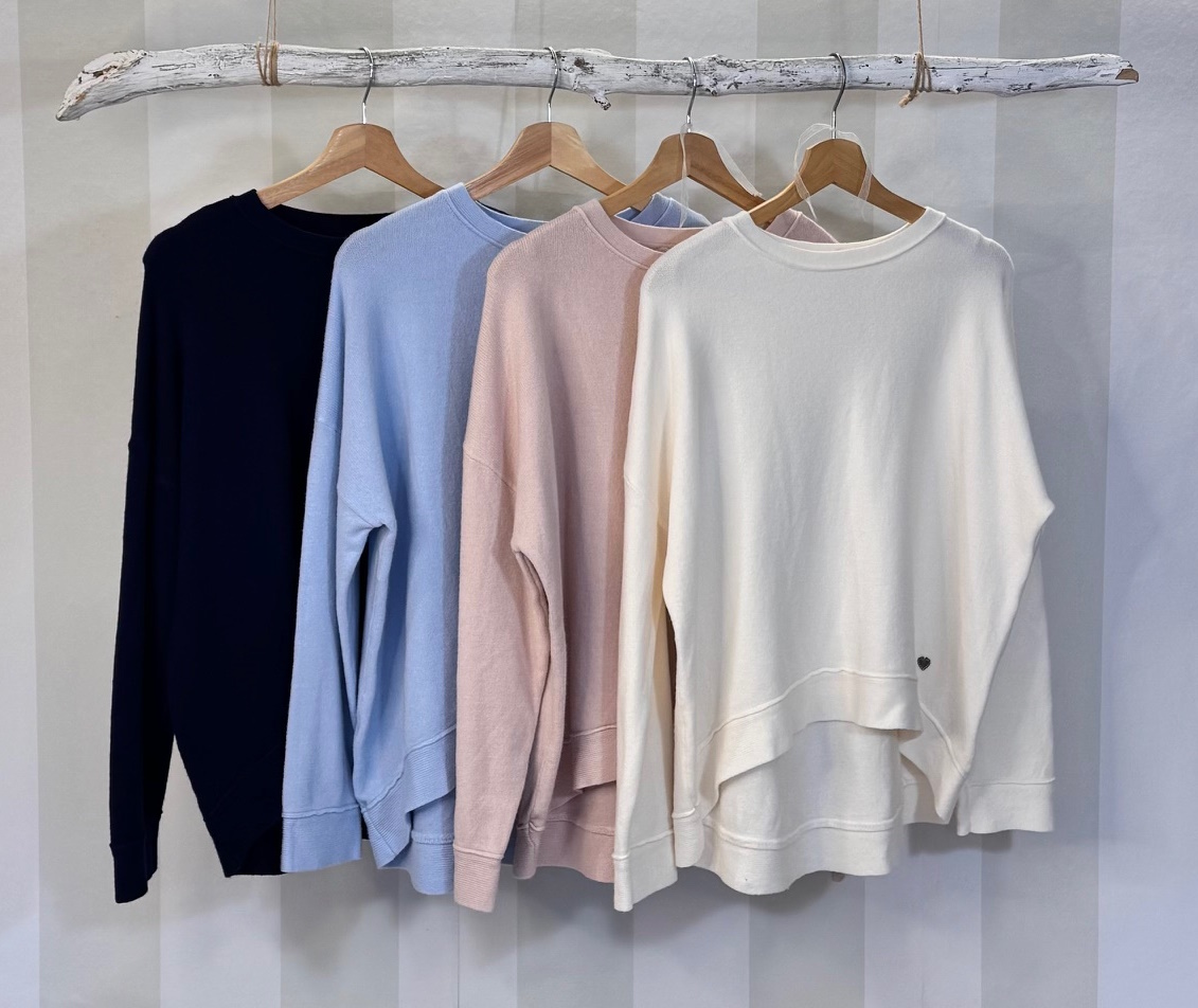 Jersey básico con cuello redondo. Talla única oversize, más largo en la parte trasera.