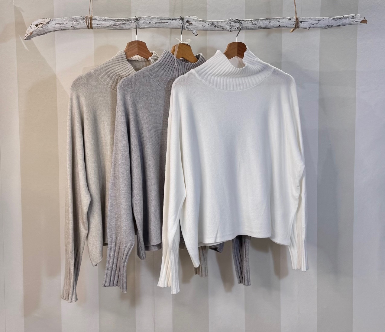 Jersey de punto con cuello perkis alto y manga larga. Tacto suave. Talla única completa.