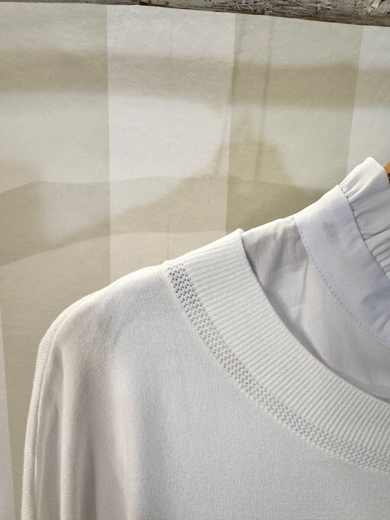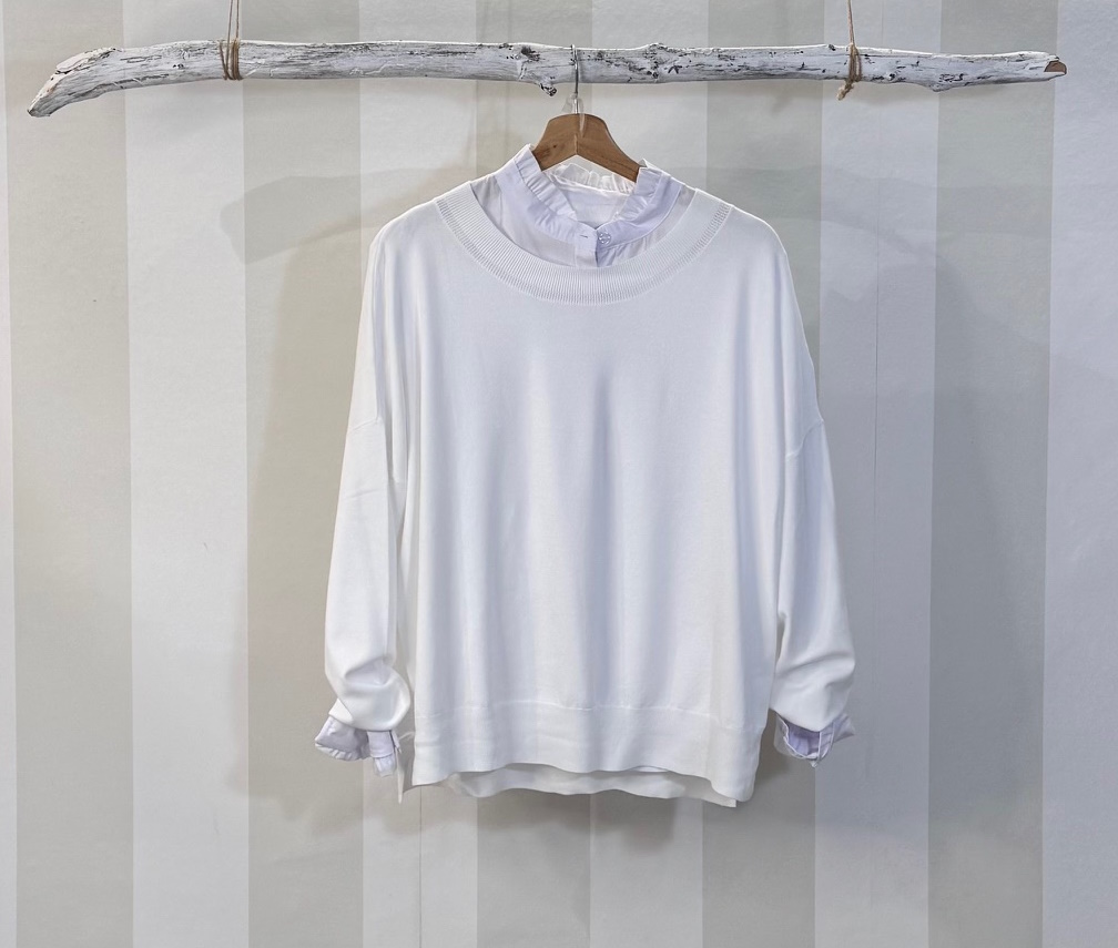 Jersey básico de punto frío con cuello redondo. Talla única bastante completa.Tejido con caída. Grosor fino.