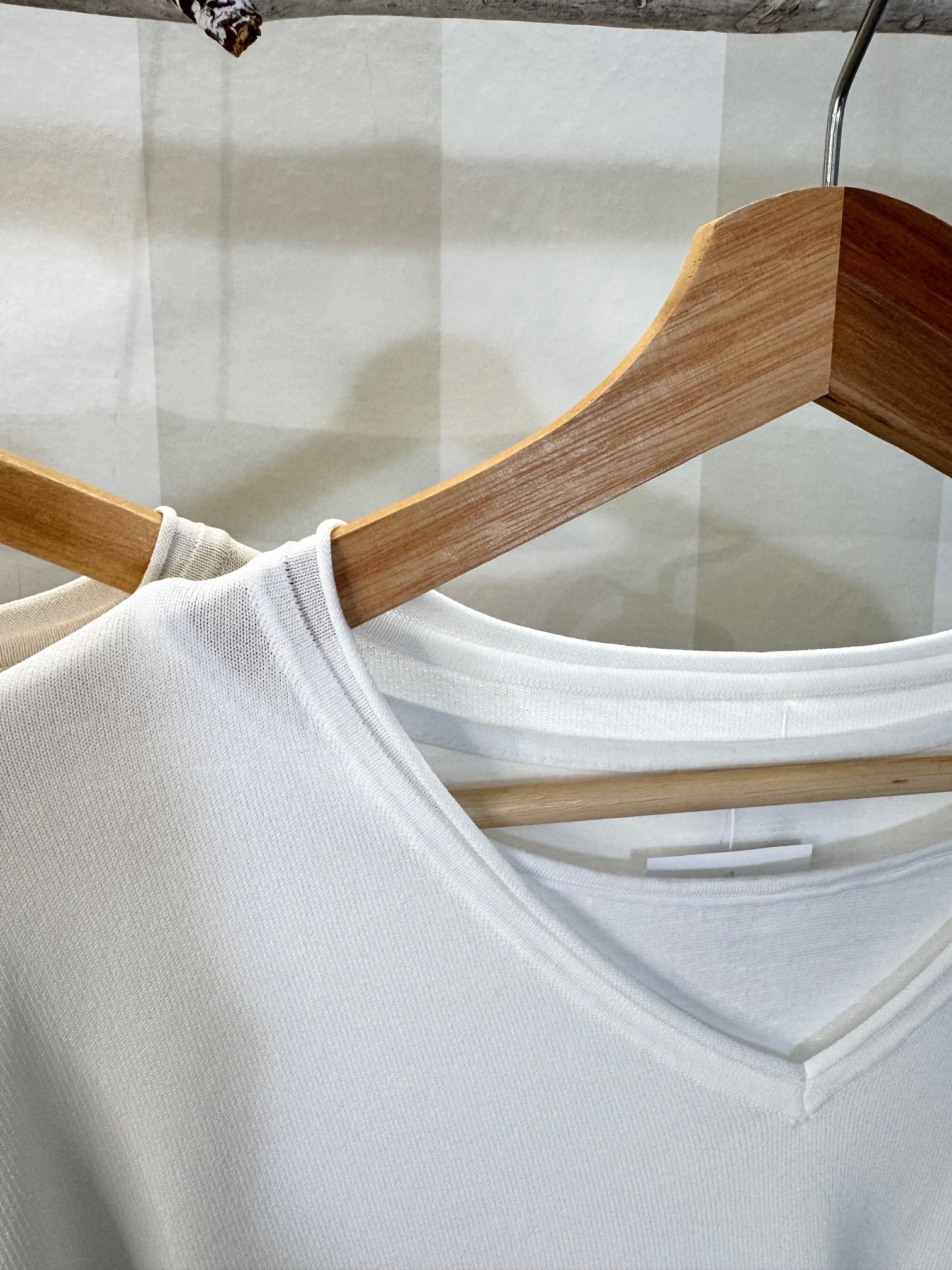 Jersey básico cuello pico ribeteado. Género de punto frío con bastante caída. Grosor medio.