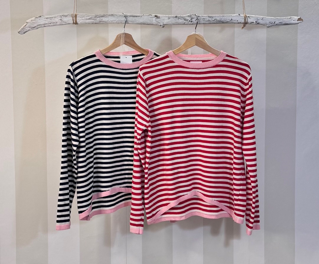 Jersey de rayas con cuello ribeteado en otro color. Talla única.