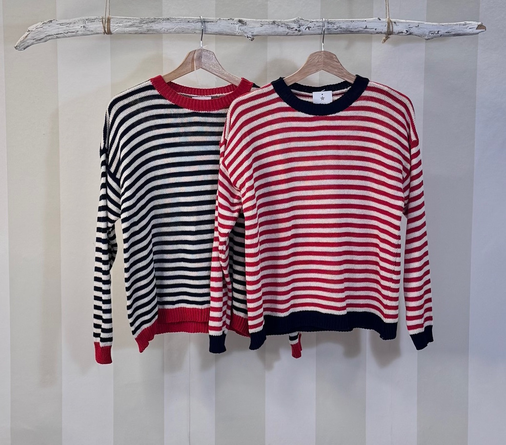 Jersey de algodón a rayas con cuello ribeteado. Talla única.