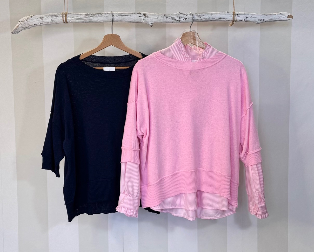 Jersey fino con manga francesa y costura vista. Talla única completa.